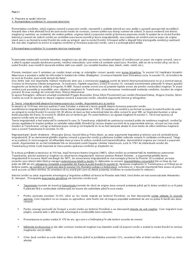 1.formarea poporului şi a limbii române. Romanitatea românilor în sursele medievale şi moderne. Romanitatea românilor, adică originea romană a poporului român, reprezintă o realitate istorică pe care astăzi o acceptă aproape toţi cercetătorii.