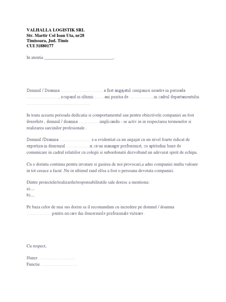 Scrisoare De Recomandare Angajare