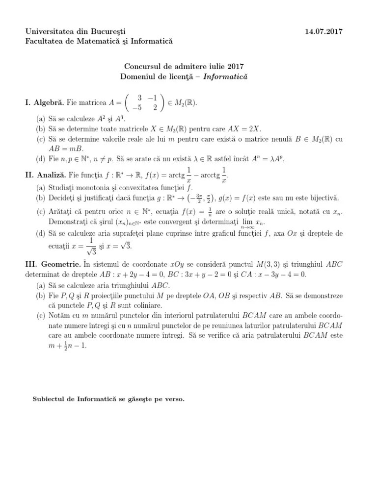 Facultatea De Matematica Bucuresti Admitere - Subiecte Admitere Politehnica Bucuresti 2013 Proba Algebra Si Analiza Matematica. Ai numeroase motive să alegi facultatea noastră. Take a look at some fun facts and learn where you can watch the race online. So, what is the internet's favorite relaxation method? Admiterea la domeniul de licenta informatica, programul de studii informatica, forma de invatamant la distanță (id) va fi organizată numai in luna . Accesează informațiile de care ai nevoie pentru admiterea la facultate.